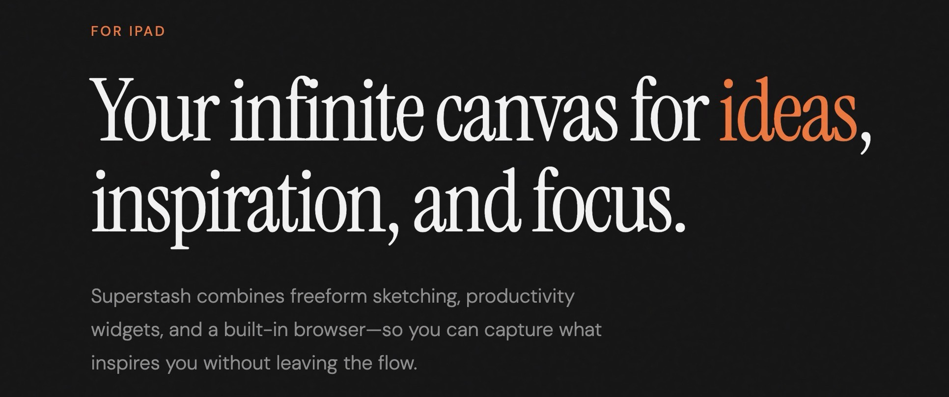 Discover Superstash for iPad, an infinite canvas that combines sketching, planning, and inspiration in one focused, private creative space.